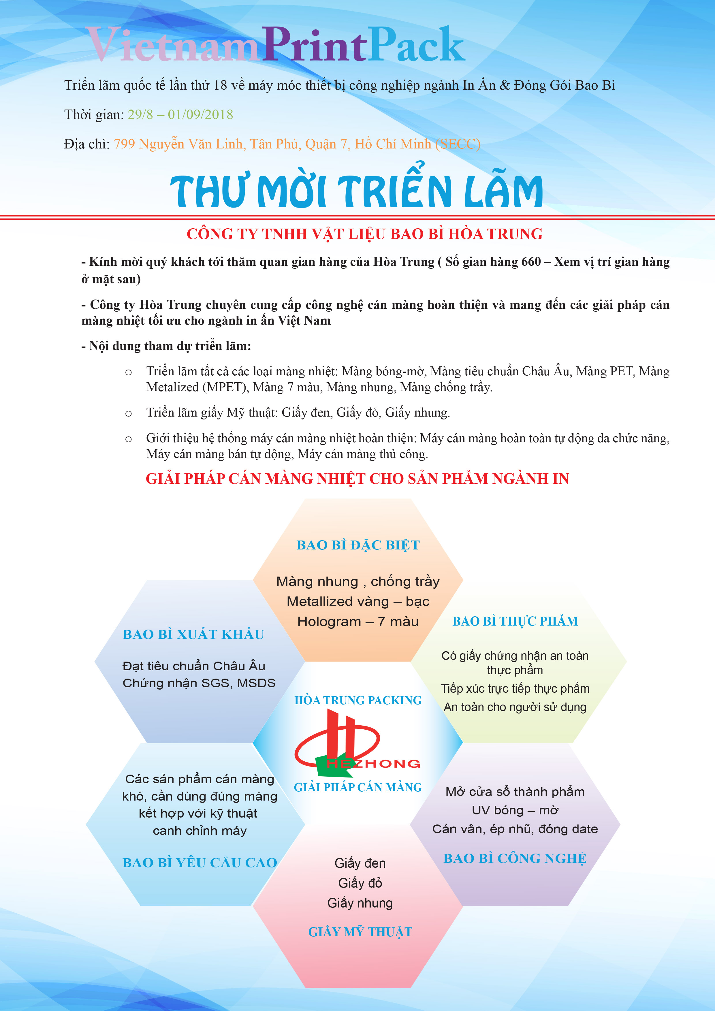 VIETNAM PRINTPACK & FOODTECH 2018 có quy mô trên 400 gian hàng của các công ty trong nước và quốc tế, trưng bày và giới thiệu các sản phẩm trong lĩnh vực đóng gói bao bì, in ấn, công nghiệp chế biến thực phẩm và thức uống, hứa hẹn sẽ là một diễn đàn giao lưu hợp tác sôi động và hiệu quả